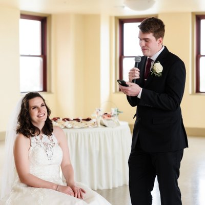 I absolutely love working at the Livestock Exchange Ballroom. It has an amazing amount of natural light, tall ceilings and some of the best views in Omaha. The venue offers two ballrooms on the top level of the building. Catering is provided by Brandeis Catering.
